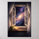 A dreamy hand-painted style artwork showing an open window overlooking a glowing galaxy.