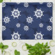 Modern navy blue and white nautical ship's wheel patterned towel, perfect for the galley kitchen. Big white ship's wheels patterned over a background of circles, in deep blue colours.