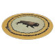 A galloping bison painted on the skin side of a beaver pelt stretched on a willow hoop. The bison (Bison bison), the largest land mammal in North America, is considered a keystone species: they once roamed the continent in great herds, and their grazing pressure helped shape the ecology of the Great Plains. Two subspecies or ecotypes have been described: the plains bison (Bison bison bison), smaller in size and with a more rounded hump, and the wood bison (Bison bison athabascae) – the larger of the two and having a taller, square hump. The bison is a relative newcomer to North America, having originated in Eurasia and migrated over the Bering Strait About 10,000 years ago it replaced the steppe bison (Bison priscus), a previous immigrant that was much larger. It is thought that the steppe bison became extinct due to a changing ecosystem and hunting pressure following the development of the Clovis point and related technology, and improved hunting skills. During this same period, other megafauna vanished and were replaced to some degree by immigrant Eurasian animals that were better adapted to predatory humans. The extant bison, technically a dwarf form, was one of these animals. There were once an estimated 20-30 million bison, also referred to as buffalo, roaming North America. Their range once roughly comprised a triangle between the Great Bear Lake in Canada's far northwest, south to the Mexican states of Durango and Nuevo León, and east along the western boundary of the Appalachian Mountains. The first thoroughfares of North America, except for the time-obliterated paths of mastodon or musko, were the traces made by bison and deer in seasonal migration and between feeding grounds and salt licks. Many of these routes, hammered by countless hoofs instinctively following watersheds and the crests of ridges in avoidance of lower places' summer muck and winter snowdrifts, were followed by Native Americans and were invaluable to explorers.. The term "buffalo" may be considered a misnomer for this animal, as it is only distantly related to either of the two "true buffalo," the Asian water buffalo and the African buffalo. However, "bison" is a Greek word meaning ox-like animal, while "buffalo" originated with the French fur trappers who called these massive beasts bœufs, meaning ox or bullock – so both names, "bison" and "buffalo," have a similar meaning. In reference to this animal, the term "buffalo," which dates to 1635, has a much longer history than the term "bison," which was first recorded in 1774.The American bison is more closely related to the wisent or European bison. Unregulated shooting of bison, which culminated in mass slaughters during the 1870s, reduced the population to 1,091 in 1889. Today, approximately 500,000 bison live across North America. Most are not pure bison but rather have been cross-bred with cattle in the past and are raised as livestock on ranches. Fewer than 30,000 bison are in conservation herds, and fewer than 5,000 are free-ranging and disease-free. Today bison are ecologically extinct throughout most of their historic range, except for a few national parks and other small wildlife areas. Yellowstone National Park has the largest population of free-roaming plains bison (about 4,000), and Wood Buffalo National Park has the largest population of free-roaming wood bison (about 10,000). A bison has a shaggy, long, dark brown winter coat, and a lighter weight, lighter brown summer coat. The winter coat is so thick and well insulated that snow can cover its backs without melting. Male bison are slightly larger than females. Plains bison typically weigh from 700 to 2,200 lbs. The heaviest wild bull ever recorded weighed 2,800 lbs. When raised in captivity and farmed for meat, the bison can grow unnaturally heavy and the largest semi-domestic bison weighed 3,800 lbs. The heads and forequarters are massive, and both sexes have short, curved horns that can grow up to 2 feet long, which they use in fighting for status within the herd and for defence. Bison are herbivores, grazing on the grasses and sedges of the North American prairies. Their daily schedule involves two-hour periods of grazing, resting and cud chewing, then moving to a new location to graze again. This regular motion ensures that bison seldom overgraze an area. Bison often rub and roll on the ground creating shallow, saucer-like depressions called wallows. Bison roll in wallow, wet or dry, covering themselves with dust or mud. Past explanations and current hypotheses suggested for wallowing behaviour include grooming behaviour associated with shedding, male-male interaction (typically rutting behaviour), social behaviour for group cohesion, play behaviour, relief from skin irritation due to biting insects; reduction of ticks and lice; and thermoregulation. Wallows were once a common feature of the plains. In winter, bison can dig through deep snow with their heads to reach the vegetation below. Bison have poor eyesight, but have acute hearing and an excellent sense of smell. Bison can reach speeds of up to 35 mph. Bison have a life expectancy of approximately 15 years in the wild and up to 25 years in captivity. Bison mate in late spring and summer in more open plain areas. During fall and winter, bison tend to gather in more wooded areas. During this time, bison partake in horning behaviours. They will rub their horns against trees, young saplings and even telephone poles. Aromatic trees like cedars and pine seem to be preferred. Horning appears to be associated with insect defence as it occurs most often in the fall when the insect population is at its highest. Cedar and pines emit an aroma after bison horn them and this seems to be used as a deterrent for insects. While often secure from predation due to their size and strength, in some areas, bison are regularly predated by wolves. Wolf predation typically peaks in late spring and early summer, with attacks usually being concentrated on c