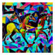 A.I. created interpretation of two abstract cubist horses composed of geometric shapes galloping through create a mosaic scene of triangles and polygons.