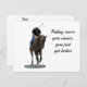 Galloping Thoroughbred Horse And Rider, Postcard. Digital Art. Spirited Thoroughbred and his rider in morning workout. Show how proud you are of the horse work you do. Wording: "Riding never gets easier, you just get better". Edit the wording to your liking.