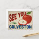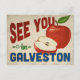 A charming Galveston Texas vintage travel postcard featuring a lovely red apple, along with fun retro style text that says, "See you in Galveston"
