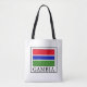 Totally thrilled with this bag. The material is thick and durable (this is my third purchase of this tote bag). The printing turned out amazing. The bright red was just as bright as it is on the computer. So impressed with this bag.