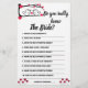 This game was fun and easy to play! Best part was that you can customize the questions based on the bride! Even thought the colors were black and white, it is clean, crisp and very readable.