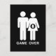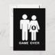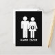 The universal man and woman symbols, holding hands, woman showing a womb/fetus, and with "Game Over" text caption. B/W design, on t-shirts, sweatshirts, cards, gifts.