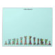 Personalize and customize this super notepad with your name or any text. Featuring a set of rainbow glass with teal chess pieces, complete with king queen knight bishop pawn rook for a unique modern design on a light Teal background.