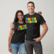 The quality of the shirts is top notch, comfortable, well fitting, the material is great. The shirts are well made and we were proud to wear them. The colors were as bright, clear and pure as advertised, easily read, not only by us, but by family and friends who saw us while we were wearing them, immediately smiled, congratulated us, asked more about our big day 50 years ago.. The printing showed up great in pictures, and we have attached a copy of us wearing them.