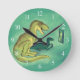 A Tyrannosaurus Rex and a Velociraptor pass the time by playing a video game. This design is available on many products and can be personalized!