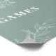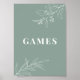 Games signs are characterized by a boho style with floral artwork and sage green colours. Printed on high-quality cardstock, they will surely impress your guests and set the tone for your special day.