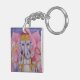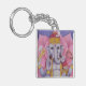 A keychain with my 18" square watercolor pencil painting of Ganesh. Ganesh is a Hindu god. He is the remover of obstacles, patron of arts and sciences, the lord of intellect and wisdom, the god of beginnings, and patron of letters and learning. He holds his own broken tusk in his lower-right hand and holds a delicacy, in his lower-left hand. In one upper arm, he holds an axe, and in the other upper arm, a noose. I have placed him seated in front of a pink lotus flower, as part of a symbol of new beginnings unfolding.