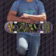 Your skateboard will be super cool with Gangsta Skate! This wicked group of green gangster skulls on a purple background is a unique design that will get you noticed!