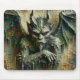 An intricate gargoyle design embodies a sense of decay and fragmentation, featuring broken pieces and sharp edges. Its moody colours include charcoal green, saffron yellow, and burnt sienna, evoking a haunting beauty.