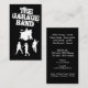 Music theme business card template with graphic of a band playing instruments, cool band name typography you can customize both the size and style, and background colour you can change in this smart vertical two side design template. Designed for a rock band, night club band, or up and coming garage bands.