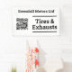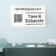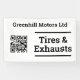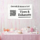 Garage banner with QR Code. Car servicing, tires, exhausts, and vehicle repairs. Black and white.