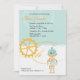 Une invitation personnalisable chérie de baby shower comportant une conception bleue et orange de robot. Carte de remerciements et autocollant assortis de faveur.