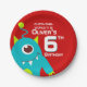 Garçons alien hors du monde d'anniversaire personnalisées plaques jetables en rouge vif et bleu vert. Design graphique alien amusant. Personnalisez avec votre propre nom et votre âge de garçon d'anniversaire. On lit actuellement Outta-this-world c'est le 6ème anniversaire d'Oliver. Idéal pour les enfants alien fête d'anniversaire pour encourager les enfants à manger. Art et design originaux par Sarah Trett. www.sarahtrett.com pour www.mylittleeden.com