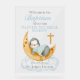 Bienvenue à l'événement baptisant de votre bébé garçon avec cette élégante Affiche de bienvenue Baptême / Christening Acrylique. Le design est d'une mignonne caricature d'aquarelle bébé pingouin dormant sur un croissant de lune et une croix religieuse en or., avec texte en gris et bleu.La façon parfaite de célébrer un baptême / baptême / communion sainte. Tout le texte peut être customisé puis personnaliser avec le bébé, le nom, l'événement, la date et l'emplacement. Félicitations et merci.