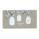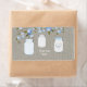 Bouteille étiquette en pot de Burlap avec jolie branche en fleur de cerisier bleu et pots en maçon sur un arrière - plan burlap. Ces étiquettes de bouteille d'eau de baby shower en bocal rustique burlap sont facilement customisés pour votre événement avec votre texte dans le style de police et la couleur de votre choix.
