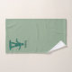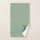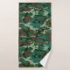 Serviette de bain pour garçon faite dans un thème camouflage de Kelly vert, vert forêt, marron et vert clair. La serviette est faite dans un vert clair avec des graphiques d'un solider de jouet vert et le texte personnalisé vert foncé. Personnalisez ce kit de serviettes pour enfant populaire, pour lire ce que vous voulez.