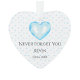 Honorer la mémoire de votre précieux bébé garçon avec ce beau gardien de l'ornement en forme de coeur. Conçu avec soin pour offrir confort et souvenir, ce morceau plein de coeur est parfait pour les parents qui pleurent leur perte ou comme un cadeau significatif pour les invités funéraires afin de chérir à jamais la mémoire de votre petit."