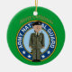 Ornement de Noël du soldat de la Garde nationale. Ce vêtement de Noël est décoré sur le devant avec le logo de la Garde nationale, un soldat en jouet portant le timbre de la Garde nationale sur son béret, et les mots "Joyeux Noël". Le dos est décoré avec le Père Noël et son sac de bonbons. Une excellente idée cadeau.