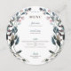 Personalize it with your own text using the templates provided. The background colour is set to white, and coordinates with our "Garden Crest" wedding collection. But feel free to choose a new fill colour in order to match it to your wedding theme. Click the "customize" button to make room for more or less items or increase/decrease the size of the font as needed. This circular menu would look great placed on the inside of each guest's dinner plate.