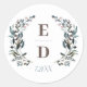 Garden Crest | White Blue Wedding Monogram Date Classic Round Sticker