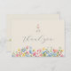 Envoyez des remerciements sincères avec cet élégant carte de remerciements de fiançailles sur le thème du jardin. L’avant présente un script "merci" romantique au-dessus d’une charmante bordure fleur sauvage aquarelle et d’un monogramme personnalisé pour couple. L'arrière comprend un espace pour un message personnalisé, ce qui le rend parfait pour exprimer de la gratitude à vos invités. Idéal pour les fêtes du printemps et de l'été, les fêtes de plein air et les événements à thème floral. Papier à lettres correspondant disponible.