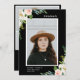 Elegant blush pink and white garden floral and greenery arrangements, graduation announcement and invitation. Card features, black background colour, single front framed photo with 3 additional photo spaces on back.