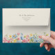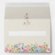 Add a romantic touch to your engagement party invitations with this charming garden floral envelope. The back flap features a full-colour watercolor wildflower border in bright spring tones, paired with elegant printed address text. Inside, a sweet pink bloom and monogram of the couple’s initials add a personal, upscale detail. Perfect for garden, spring, or floral-themed events. Coordinates beautifully with matching engagement invitations and stationery.