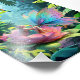 A tiny girl and a butterfly with iridescent wings perched on a giant flower in a lush jungle, accompanied by a colourful toucan. Large leaves and vibrant flowers surround them, creating a magical, whimsical scene. Digital Art