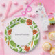 This colourful vegetable wreath features hand-painted tomatoes, carrots, lettuces, herbs and lemons circling a clean ivory centre, finished with your brand’s signature touch of plum typography. Perfect for family picnics, kitchen garden lunches, or celebrations with friends who love their greens!