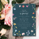 Announce the joyous arrival of your little one with our Garden is Growing Wildflower Baby Shower Invitation, featuring a sophisticated navy blue background adorned with a delightful wildflower border design. This invitation exudes rustic charm and natural elegance, making it the perfect choice for celebrating the blossoming new life soon to join your family.
