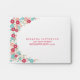 Jolie bordure fleurie encadre cette enveloppe coordonnant RSVP ou carte de réception avec de jolies fleurs de canneberge, rose et turquoise. Les modèles de l'adresse de la baie correspondant sur le devant et le rabat contiennent votre adresse. À l'intérieur d'un motif à bande de coordination finit le look. Idéal pour un mariage de printemps ou un jardin extérieur. Les éléments de coordination de cette suite de conception comprennent le faire-part de mariage, les cartes de réception, les cartes de réponse, les cartes de table, les cartes postales, les cartes de direction, les autocollants de faveur et les étiquettes de adresse.