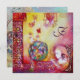 Whimsical ,elegant ,artistic swirls and fairy dusts in teal, aqua blue,green,red,pink,yellow colours and gold sparkles., .Detail from trypthic , mixed media painting with golden and silver foil , 2009 . The theme concerns archetypes and medieval alchemic symbolism . This is a distilled vision from occidental and oriental collective imaginary searching remote images from the deep in the mysterious garden of the lost shadows.