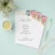 This beautiful floral design features pink watercolor flowers and string lights. Add your information using the template form. The Customize Further feature can be used to access the advanced editing menu where you can change the font, colors and layout of the text.