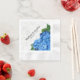 Garden romance, blue hydrangea custom paper napkins. Use this pretty, bright blue floral design for bridal showers, wedding receptions, rehearsal dinner, or any event. Customize two lines of text. Angled design on coined napkins with names and wedding date in black text.