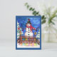Original watercolor painting by Sandra Gale of a traditional snow man standing in front of a picket fence with glowing Christmas lights reflecting off the winter snow. Birds, bird houses, and Christmas ornaments all make this a classic Christmas scene that looks great on wrapping paper, holiday cards and more!