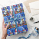 Original watercolor painting by Sandra Gale of a traditional snow man standing in front of a picket fence with glowing Christmas lights reflecting off the winter snow. Birds, bird houses, and Christmas ornaments all make this a classic Christmas scene that looks great on wrapping paper, holiday cards and more!