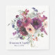 This wedding paper napkin features a beautiful bouquet of garden flowers in tones of purple violet, crimson red, blue, peach, and soft green. At the bottom left is your custom text in blue. These pretty napkins match the Garden Splash Modern Floral Wedding Invitations and other wedding products in our store.
