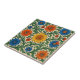 A truly enchanting piece that brings the lush beauty of a blossoming garden into your home. A vibrant, symmetrical design centred around a grand, golden-yellow flower with an intricate orange and red core. This central bloom is encircled by an abundant tapestry of swirling green vines and leaves, creating a rich, organic pattern. Scattered throughout the verdant foliage are smaller accent flowers in complementary shades of blue and red, adding depth and visual interest to the overall composition. The entire design rests upon a soft, creamy beige background, allowing the rich colours of the flowers and the intricate details of the foliage to truly pop. Inspired by classic botanical illustrations and the timeless elegance of Arts and Crafts movement designs, this tile is a testament to sophisticated artistry. Perfect as a captivating focal point in a kitchen backsplash, a charming accent in a bathroom, or as a standalone decorative piece, it will infuse any space with an air of natural beauty and artistic grace.