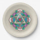 These paper plates that match Jewbilee's newest Shabbos charcuterie board. Leslie Sigal Javorek's original digital painting gives illusion of hand-thrown pottery, an Art Nouveau-ish mandala, heart inside Star of David, surrounded by highly stylized flowers.