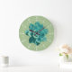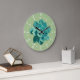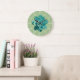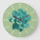 Cute garden green succulent print clock with white roman numerals and tick marks for hours and minutes.