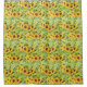 Sunny and brightly coloured watercolor pattern features a garden of large golden yellow sunflowers on light green background.