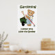 Funny gardening tips that may not have occurred to you. Cute Gardener Teddy Bear with wheelbarrow, soil and hoe says...... Gardening ... helps you hide the bodies.