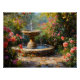 Garden with Blooming Roses and Water Fountain Poster