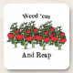 Tomatoes are a staple for most every gardener and none of us can wait for those juicy red fruits. Fun graphic design with a row of tomato plants surrounded by the play on words Weed 'em And Reap.