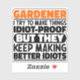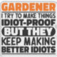 Funny Gardener Sayings "Gardener I Try To Make Things Idiot Proof But They Keep Making Better Idiots". Grab this Funny Gardener design as a funny gifts for an awesome mom, dad or friend.