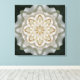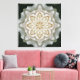 Created from original photos of the shapes and patterns of a summer Gardenia blossom, a mandala in ivory, white, gold,and pale green over a dark green leafy abstract background.