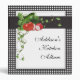 Whether you are adding recipes or pictures of your garden, this garden album will be a keepsake. The front has tomato, bell pepper, cucumber and onions with leaves and vines in the background. They lay on top of black and white chequerboard.